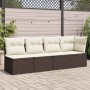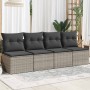 Sofá de jardín de 4 plazas con cojines en ratán sintético negro