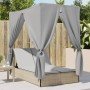 ¡Relájate y disfruta del aire libre en esta cómoda tumbona doble! Material duradero: El ratán sintético, también conocido como ratán sintético, es un material sintético resistente y de bajo mantenimiento que se parece al ratán natural. Es ligero, fácil de limpiar y se usa comúnmente para muebles de exterior debido a su durabilidad y propiedades resistentes a la intemperie.Respaldo ajustable: Este mueble de exterior cuenta con un respaldo con 4 posiciones ajustables, con lo que puedes encontrar fácilmente la posición más cómoda y adecuada para relajarte.Techo y cortinas prácticos: Gracias al techo y las cortinas, podrás crear un ambiente exterior fresco y agradable durante todo el día.Experiencia de asiento cómoda: Estos muebles de exterior, completos con cojines acolchados gruesos, ofrecen una experiencia de asiento cómoda.Funda desenfundable y lavable: Estos cojines de asiento cuentan con fundas desenfundables para facilitar el lavado y mantenimiento. Información útil:Para asegurarte de que tus muebles de exterior se mantengan hermosos, recomendamos protegerlos con una funda impermeable.