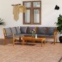 Juego de muebles jardín 5 pzas con cojines madera maciza acacia