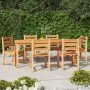 Este juego de comedor para jardín de madera, con un diseño elegante y moderno, será una excelente opción para comer o relajarse en el jardín. Madera de teca maciza: La madera de teca maciza es un hermoso material natural. Ha sido secada al horno y después lijada finamente para darle un aspecto muy suave. La madera de teca es conocida por su excepcional fuerza y resistencia a la intemperie.Tablero robusto: Esta mesa de comedor te proporciona un tablero robusto. Puedes colocar aperitivos, bebidas y cualquiera de tus adornos favoritos.Resistente al agua: Gracias a ser resistente al agua y a su aspecto clásico, puedes colocar el juego de muebles de jardín en cualquier lugar de tu dulce hogar, tanto fuera como dentro.Cómodo asiento: Cada banco tiene un respaldo, por lo que resultan comodísimos. Nota:Cada producto viene con un manual de montaje en la caja para facilitar el montaje.Para prolongar la vida de tus muebles de exterior, te recomendamos que los protejas con una funda impermeable.