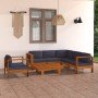 Conjunto de jardín de 6 piezas con cojines, 100 x 60 cm, madera de acacia