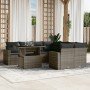 Set de sofás de jardín con cojines 9 pzas ratán sintético negro