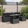 Set de sofás de jardín 6 piezas y cojines ratán sintético negro