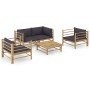 Set de muebles de jardín 6 piezas bambú y cojines blanco crema