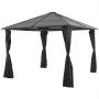 Cenador con cortinas aluminio 4x3x2,6 m negro