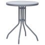 ¡Disfruta de un buen desayuno o merienda con tus amigos o familiares al aire libre alrededor de nuestra mesa redonda de jardín! Esta mesa redonda posee una estructura de acero con recubrimiento en polvo, por lo que es estable y duradera. La superficie de vidrio con estampado sedoso aporta un plus de elegancia y es fácil de limpiar y mantener. Esta mesa, con un diseño contemporáneo, es la combinación adecuada para tu patio o jardín. La mesa es fácil de montar. Nota: Recomendamos cubrir el conjunto en caso de lluvia, nieve y heladas para que sea más duradero.
