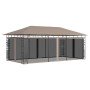 Si estás buscando un toldo extra para tus actividades al aire libre, este cenador de jardín es perfecto para tu patio, y te permite aprovechar al máximo tu jardín. La estructura tiene una robusta construcción de metal y hace que sea duradera y firme. El tejado de tela te protege del sol abrasador, por lo que te ayuda a disfrutar del confort durante tus actividades al aire libre. Esta carpa, equipada con mosquiteras, te protege de los insectos y mosquitos. Así, puedes gozar de tu tiempo de descanso sin molestias. Además, este cenador se puede instalar en muy poco tiempo. Nota: Este producto NUNCA se debe usar con mal tiempo, como fuertes vientos, fuertes lluvias, fuertes nevadas, tormentas, etc.