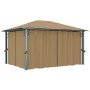 Este cenador con cortinas presenta un diseño clásico y elegante. Será el refugio perfecto para eventos al aire libre, como cenas, barbacoas, reuniones familiares, y demás actividades. El techo, hecho de tela Oxford con pintura PA, protege del resplandor y los dañinos rayos UV de la luz solar directa. El cenador está sólidamente construido con aluminio y acero macizo y, por lo tanto, es resistente a la oxidación y muy estable. El pabellón se entrega con 4 paredes laterales, que se pueden recoger con mal tiempo. También se incluyen las pantallas de malla para mantener alejados a los insectos y garantizar la buena circulación del aire. Asimismo, también posee cierres de gancho y bucle para facilitar la fijación. El cenador se fija fácilmente al suelo con los accesorios de montaje incluidos. Es fácil de montar. NOTA: Este producto NUNCA se debe usar con mal tiempo, como fuertes vientos, fuertes lluvias, nieve, tormentas, etc.
