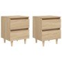 Mesitas de noche 2 uds patas madera blanco brillo 40x35x50 cm