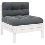 Muebles de jardín 3 piezas madera maciza pino con cojines crema