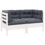 Juego muebles de jardín 3 pzas cojines gris madera pino maciza