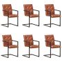 Sillas voladizas de comedor 4 unidades cuero auténtico marrón