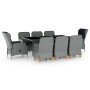 Set comedor jardín 9 piezas cojines ratán sintético gris oscuro