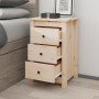 Estas mesitas de noche de madera con un diseño elegante son un complemento atemporal para la decoración de tu hogar. Madera de pino maciza: La madera de pino maciza es un bonito material natural. La madera de pino tiene vetas rectas, y los nudos dan al material su distintivo aspecto rústico.Amplio espacio de almacenamiento: Equipada con 3 cajones, esta mesita de noche ofrece un práctico espacio de almacenamiento para guardar bien organizados y al alcance de la mano revistas, mandos a distancia y otros objetos pequeños.Superficie robusta: La mesita de noche cuenta con una robusta superficie que puede ser utilizada para colocar lámparas de mesa, libros, etc. Advertencia:Para evitar el vuelco, este producto debe usarse con el dispositivo provisto para fijarlo a la pared.