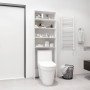 Con este armario para la lavadora puedes crear y usar de forma óptima un espacio de almacenaje adicional en el baño o en el cuarto de la colada. Material de primera calidad: La madera contrachapada tiene una calidad excepcional con superficie lisa y también cuenta con fuerza, estabilidad y resistencia a la humedad.Suficiente espacio de almacenamiento: Los 4 compartimentos ofrecen un amplio espacio de almacenamiento para mantener bien organizados y al alcance de la mano los utensilios de lavandería, los productos de limpieza, los artículos de aseo y otros artículos.Función de ahorro de espacio: Esta estantería para lavadoras puede aprovechar el espacio de almacenamiento desperdiciado encima de la lavadora o el inodoro.Fácil de limpiar: Este armario para lavadora es fácil de limpiar con un paño húmedo. Nota:Los tornillos y los tacos para el interior de la pared no están incluidos. Busca y utiliza tornillos y tacos adecuados para tus paredes. Si no lo tienes claro, busca asesoramiento profesional. Lee y sigue cada paso de las instrucciones cuidadosamente. Advertencia:Para evitar el vuelco, este producto debe usarse con el dispositivo provisto para fijarlo a la pared.