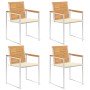 Estas sillas de madera para jardín son una elección excelente para cenar al aire libre o simplemente relajarte en el jardín o el patio. Hecho de madera dura de teca muy duradera, este mueble de teca ha sido secado al horno y lijado finamente para darle una apariencia muy lisa. La madera de teca es conocida por su excepcional robustez y resistencia a la intemperie, lo que la hace mucho más adecuada para muebles de jardín que cualquier otro tipo de madera. La madera de teca es la elección perfecta si quieres comprar un mueble de jardín duradero. Las sillas también están hechos de acero inoxidable 304 de alta resistencia, por lo que son resistente a la oxidación y fáciles de limpiar. Asimismo, el cojín añade un plus de comodidad mientras descansas. Cada cojín tiene dos juegos de cuerdas para fijarlo firmemente sobre la silla de exterior.