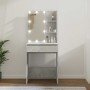 Con unas líneas rectas y elegantes y una forma asimétrica repleta de originalidad, ¡este tocador atraerá todas las miradas, sin duda! Material duradero: La madera contrachapada tiene una calidad excepcional, con una superficie lisa y también cuenta con fuerza, estabilidad y resistencia a la humedad.Luces LED: La mesa tocador tiene bombillas LED con USB, que se pueden cambiar fácilmente de modo cálido a blanco frío. Las bombillas LED integradas alrededor del espejo iluminan tu belleza.Amplio espacio de almacenaje: El generoso cajón y los dos estantes abiertos de esta mesa de maquillaje ofrecen espacio suficiente para organizar tus cosas y también para que la habitación esté limpia y ordenada.Advertencia:Para evitar el vuelco, este producto debe usarse con el dispositivo provisto para fijarlo a la pared. Nota:Cada producto viene con un manual de montaje en la caja para facilitar el montaje.