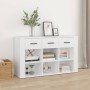 Este aparador clásico, con un aspecto atemporal, está pensado para ser un excelente aporte a tu hogar. Material robusto: La madera contrachapada tiene una calidad excepcional, con una superficie lisa y también cuenta con fuerza, estabilidad y resistencia a la humedad. Hecho de madera contrachapada, este armario auxiliar se limpia fácilmente con un paño húmedo.Amplio espacio de almacenaje: El armario ofrece un amplio espacio de almacenamiento para mantener tus diversos artículos de uso diario bien organizados y al alcance.Función de exhibición: La robusta superficie es ideal para exhibir objetos decorativos, marcos de fotos o pequeñas plantas. Nota: La lona impermeable no está incluidaCada producto viene con un manual de montaje en la caja para facilitar el montaje.Advertencia:Para evitar el vuelco, este producto debe usarse con el dispositivo provisto para fijarlo a la pared.