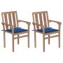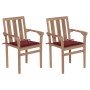 Sillas de jardín 2 unidades con cojines negro madera de teca