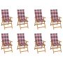 Este juego de sillas de jardín de madera es un excelente aporte para tu jardín o patio. Es ideal para relajarte, charlar con familiares y amigos o simplemente disfrutar del buen tiempo. Hecha con madera dura de teca muy duradera, este mueble de teca ha sido curado, secado en horno y luego lijado finamente para darle una apariencia muy suave. La madera de teca es conocida por su excepcional resistencia a la fuerza y al clima, por lo que es mucho más adecuada para muebles de jardín que cualquier otro tipo de madera. La madera de teca es la elección perfecta si deseas adquirir un mueble de jardín duradero. El respaldo de la silla se puede ajustar en 7 posiciones de reclinado, para que siempre puedas encontrar la posición más cómoda. También es ligera, lo que facilita poder moverla. La silla de exterior también se puede plegar para ahorrar espacio cuando no la uses. El cojín incluido es más que un aporte práctico, también tiene una función decorativa.