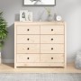 Este práctico aparador de madera está destinado a satisfacer diversos requisitos y es un aporte ideal para la habitación. Madera maciza de pino: Este armario está hecho de madera maciza de pino. La madera maciza de pino es un bonito material natural. La madera de pino tiene vetas rectas, y los nudos dan al material su distintivo aspecto rústico.Suficiente espacio de almacenamiento: Equipado con cajones espaciosos, el aparador ofrece un amplio espacio de almacenamiento para mantener varios elementos esenciales diarios bien organizados y al alcance de la mano.Superficie robusta: También puedes colocar tus fotos favoritas, adornos o flores en la superficie de este armario para alegrarte la vida. Advertencia:Para evitar el vuelco, este producto debe usarse con el dispositivo provisto para fijarlo a la pared. Nota:Cada producto viene con un manual de montaje en la caja para facilitar el montaje.