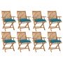 Sillas de jardín 2 uds madera maciza de teca con cojines azul