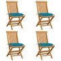 Sillas de jardín 2 uds madera maciza de teca con cojines verdes