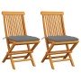 Sillas de jardín 2 uds madera maciza de teca con cojines negros