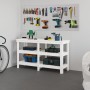 Este banco de trabajo de madera es un práctico complemento para la casa. Madera maciza de pino: La madera maciza de pino es un hermoso material natural. La madera de pino tiene una veta recta, y los nudos dan al material su característico aspecto rústico.Amplio espacio de almacenamiento: Esta mesa de trabajo con estantes ofrece mucho espacio de almacenaje para mantener tus cosas bien organizadas y al alcance.Estructura robusta: La estructura de madera garantiza la solidez y la estabilidad. Advertencia:Para evitar que vuelque, este producto debe usarse con el dispositivo de fijación a la pared (no incluido).Nota:Cada producto viene con un manual de montaje en la caja para facilitar el montaje.