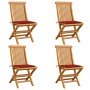 Sillas de jardín 4 uds con cojines rojo tinto madera de teca