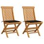Sillas de jardín 4 uds madera de teca y cojines a cuadros gris