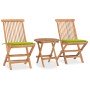 Set comedor de jardín plegable 3 piezas madera de teca cojines