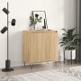Este aparador de moda, con un aspecto atemporal, está destinado a ser un excelente complemento para la casa. Material duradero: La madera de ingeniería tiene una calidad excepcional, con una superficie lisa y también cuenta con fuerza, estabilidad y resistencia a la humedad. Hecho de madera de ingeniería, el armario de almacenaje es fácil de limpiar con un paño húmedo.Amplio espacio de almacenaje: El aparador ofrece un amplio espacio de almacenaje para mantener tus cosas bien organizadas y al alcance.Función expositora: La superficie del aparador es perfecta para exponer los objetos decorativos, marcos de fotos y plantas.Patas de hierro: Las patas de hierro del armario auxiliar garantizan su solidez y estabilidad. Advertencia:Para evitar que vuelque, este producto debe usarse con el dispositivo de fijación a la pared incluido.