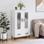 ¿Buscas un aparador elegante? ¡Este aparador alto añade un toque moderno a la decoración de la casa! Material duradero: La madera contrachapada tiene una calidad excepcional, con una superficie lisa y también cuenta con fuerza, estabilidad y resistencia a la humedad. Patas de metal: Las patas de metal le dan un estilo moderno y tranquilo a la casa mientras garantizan su estabilidad. Amplio espacio de almacenaje: El aparador ofrece un amplio espacio de almacenaje para mantener tus artículos de uso diario bien organizados y al alcance. Superficie estable y robusta: La superficie de este aparador de almacenaje es perfecta para exponer objetos decorativos, marcos de fotos y plantas. Diseño práctico: Podrás ver tus cosas detrás de la puerta de vidrio y así, además, no se llenarán de polvo. Asimismo, los tiradores facilitan la apertura del mueble auxiliar. Advertencia:Para evitar que vuelque, este producto debe usarse con el dispositivo de fijación a la pared incluido.