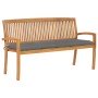 Banco de jardín apilable y cojín madera maciza de teca 159 cm