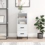 Este moderno aparador, con un aspecto atemporal, está destinado a ser un excelente complemento para la casa. Material duradero: La madera de ingeniería tiene una calidad excepcional, con una superficie lisa y también cuenta con fuerza, estabilidad y resistencia a la humedad. Patas de metal: Las patas de metal le dan un estilo moderno y tranquilo a la casa mientras garantizan su estabilidad. Amplio espacio de almacenaje: Este aparador está diseñado con 2 cajones y 2 compartimentos para guardar las cosas organizadas y al alcance. Superficie estable y resistente: La superficie del armario es perfecta para exponer objetos decorativos, marcos de fotos y plantas. Advertencia:Para evitar que vuelque, este producto debe usarse con el dispositivo de fijación a la pared incluido.