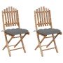 Sillas de jardín plegables 2 unidades bambú con cojines