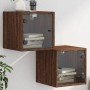 Mesita de noche con puerta de vidrio gris hormigón 35x37x35 cm