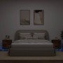 Mesitas de noche con luces LED 2 uds madera ingeniería blanca