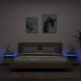 Mesita de noche con luces LED roble ahumado 40x39x48,5 cm