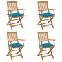 Sillas de jardín plegables 4 uds y cojines madera maciza acacia