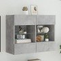 Mueble TV de pared con luces LED roble marrón 98,5x30x60,5 cm