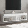 Con un diseño moderno y práctico, este mueble para la TV con luces LED se convertirá en el centro de atención de la estancia. Material duradero: La madera de ingeniería tiene una calidad excepcional y una superficie lisa, y también cuenta con fuerza, estabilidad y resistencia a la humedad. Hecho de madera de ingeniería, este soporte de TV es robusto y duradero.Amplio espacio de almacenaje: El mueble de TV ofrece un amplio espacio para mantener bien organizados y al alcance reproductores de DVD, receptores, discos y otros objetos pequeños.Luces LED RGB: Este mueble cuenta con luces LED RGB, con diferentes menús para cambiar el color de las luces y permitir que el color se ajuste de forma automática.Diseño de pared: Este mueble se puede colgar en la pared para conseguir espacio de almacenamiento extra. De esta manera, puedes maximizar el espacio en el suelo y mantener la zona despejada. Información útil:Los tornillos y los tacos para el interior de la pared no están incluidos. Recomendamos encontrar y utilizar tornillos y tacos adecuados específicamente para las paredes. Si no estás seguro, puedes consultar con un profesional. Lee y sigue cada paso de las instrucciones.El producto tiene un conector USB que necesita una fuente de alimentación USB certificada de 5 V (no incluida).