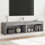 Con un diseño moderno y práctico, estos muebles para TV con luces LED se convertirán en el centro de atención de la estancia. Material duradero: La madera de ingeniería tiene una calidad excepcional y una superficie lisa, y también cuenta con fuerza, estabilidad y resistencia a la humedad. Hechos de madera de ingeniería, estos soportes de TV son robustos y duraderos.Amplio espacio de almacenaje: Los muebles de TV ofrecen un amplio espacio para mantener bien organizados y al alcance reproductores de DVD, receptores, discos y otros objetos pequeños.Luces LED RGB: Estos muebles cuentan con luces LED RGB, con diferentes menús para cambiar el color de las luces y permitir que el color se ajuste de forma automática.Diseño de pared: Estos muebles se pueden colgar en la pared para conseguir espacio de almacenaje extra. De esta manera, puedes maximizar el espacio en el suelo y mantener la zona despejada. Información útil:Los tornillos y los tacos para el interior de la pared no están incluidos. Recomendamos encontrar y utilizar tornillos y tacos adecuados específicamente para las paredes. Si no estás seguro, puedes consultar con un profesional. Lee y sigue cada paso de las instrucciones.El producto tiene un conector USB que necesita una fuente de alimentación USB certificada de 5 V (no incluida).
