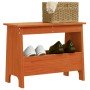 ¡Crea un ambiente cálido y acogedor justo al lado de la puerta con este banco de recibidor de madera! Madera maciza de pino: Este banco de pasillo está hecho de madera maciza de pino. La madera maciza de pino es un bonito material natural. La madera de pino tiene vetas rectas, y los nudos dan al material su distintivo aspecto rústico.Amplio espacio de almacenamiento: Con el estante inferior, este banco de entrada proporciona un amplio espacio para guardar tus libros, zapatos u otras pertenencias personales. Así, tu pasillo, espacio de entrada u otras zonas de estar estarán ordenados y libres de desorden.Superficie estable: El banco para salón tiene una superficie resistente, ideal para exponer objetos decorativos, marcos de fotos, macetas, etc. La superficie del banco de almacenaje también sirve de asiento.