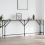 Añade un toque de elegancia a la entrada, el salón o el pasillo con esta elegante mesa consola. Material duradero: La madera de ingeniería tiene una calidad excepcional, con una superficie lisa, y también se caracteriza por su fuerza, estabilidad y resistencia a la humedad. Hecha de madera de ingeniería, la mesita de sofá es fácil de limpiar.Tablero resistente: El robusto tablero de la mesa de recibidor es perfecto para colocar fotos enmarcadas, macetas y otros objetos decorativos.Patas ajustables: Las cinco patas ajustables con almohadillas de plástico mantienen el equilibrio de la mesa sobre terrenos irregulares y aumentan su estabilidad.Estructura metálica: La estructura metálica añade un estilo industrial a la casa, además de garantizar su durabilidad y estabilidad. Advertencia:Para evitar que vuelque, este producto debe usarse con el dispositivo de fijación a la pared incluido.