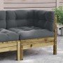 Este sofá de jardín de madera de 3 plazas con cojines y reposapiés será un fantástico complemento para tu jardín, terraza o patio para charlar con familiares y amigos o simplemente disfrutar del buen tiempo. Madera maciza de abeto douglas: La madera maciza de abeto douglas es madera muy duradera que funciona bien para exteriores. La madera de pino douglas también es lo bastante fuerte para trabajar con el mínimo cuidado, incluso bajo la influencia del clima. Fabricado en madera maciza de Douglas, este sofá de exterior es duradero y estable.Asiento cómodo: El respaldo y los cojines acolchados gruesos hacen que los asientos de jardín resulten más cómodos.Uso versátil: Este taburete de exterior no solo se puede usar para sentarse o descansar los pies, sino que también se puede utilizar como mesa de centro para colocar bebidas, comida y adornos.Diseño de listones: El diseño de listones del sofá de palés evita que el agua se acumule de forma eficaz, para que el asiento permanezca seco y no se pudra.Diseño modular: El sofá de jardín de madera tiene un diseño modular que lo hace completamente flexible y fácil de mover para adaptarlo a cualquier entorno. ¡Puedes combinarlo con otros segmentos modulares disponibles en el menú desplegable para crear tus propias configuraciones de muebles de jardín! Información útil:Para asegurarte de que tus muebles de exterior se mantengan hermosos, recomendamos protegerlos con una funda impermeable.