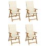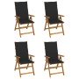 Sillas de jardín reclinables 4 uds madera maciza acacia cojines