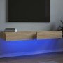 Muebles de TV con luces LED 2 uds roble ahumado 60x35x15,5 cm