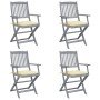 Sillas de jardín plegables 6 uds cojines madera maciza acacia